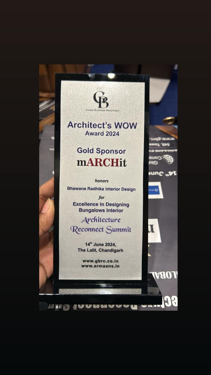 BR Designs has been awarded as the Best Interior Design Firm for Bungalows, an esteemed honor sponsored by Global Business Reconnect and awarded by Architectural Digest. This accolade reflects our dedication to crafting timeless, bespoke, and highly functional luxury residences.